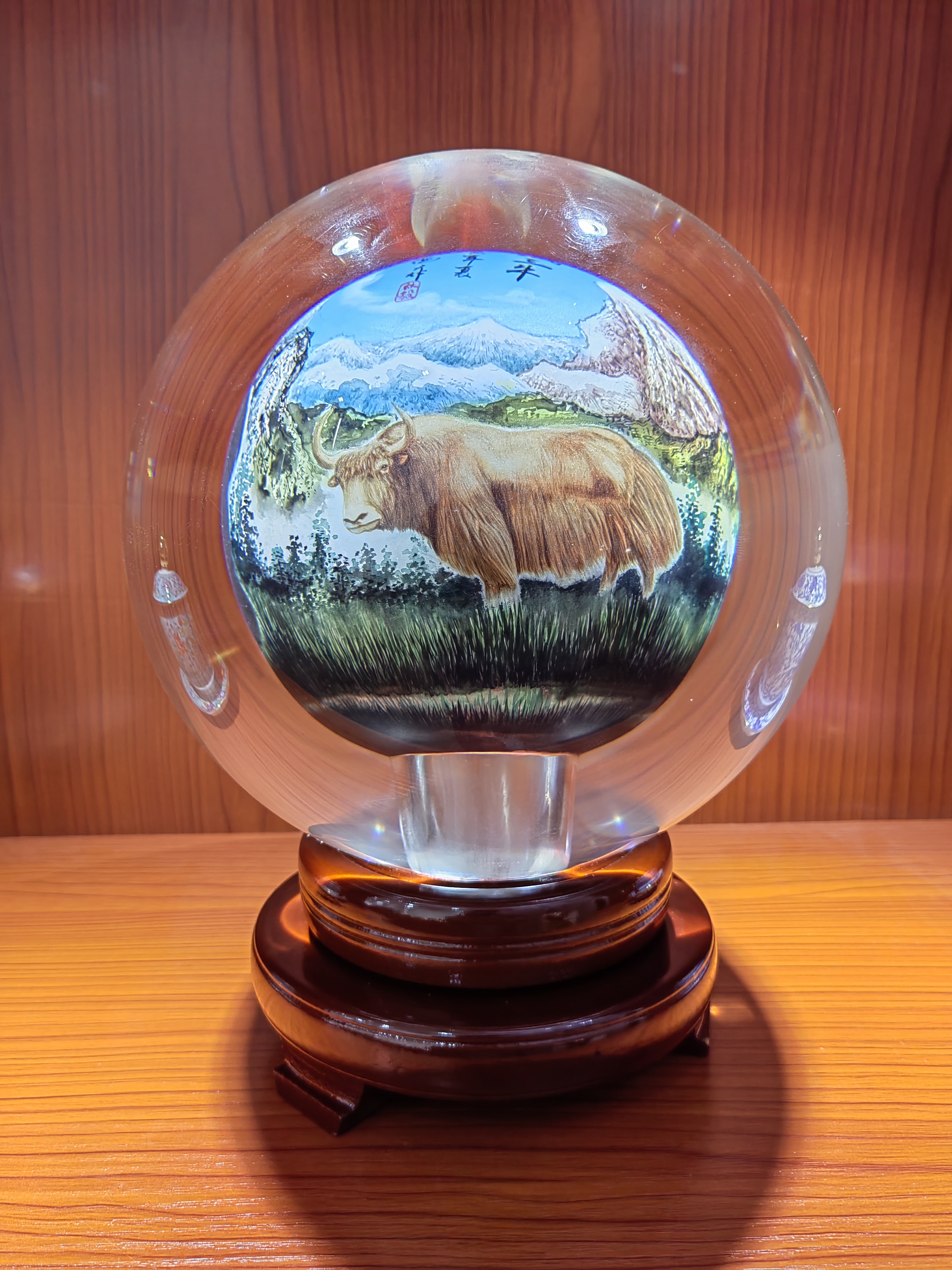 继公司之前推出的水晶系列“三牛精神”后,广受好评,栩栩如生的“三牛”嵌入晶莹剔透的水晶球内,让小小水晶球承载时代精神。炉霍县华彩文化传播有限公司再次以“三牛”作画,以同样的载体画出“三牦牛”,续绘“三牛”不只是宣扬为民服务的“孺子牛”、创新发展的“拓荒牛”、艰苦奋斗的“老黄牛”的时代精神,更包括民族团结友爱、奋力共进的时代精神,所以,我们绘制雪域高原的牦牛,丰富展现民族文化交融。