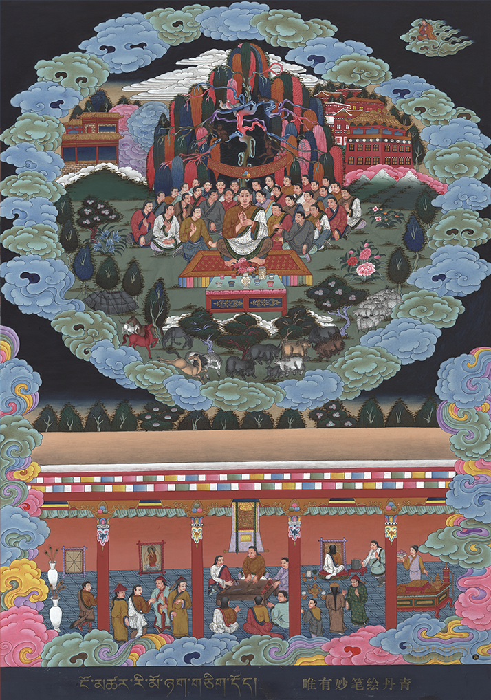 传说十七世纪初,郎卡杰纤毫毕现、出神入化的绘画功底令世人为之赞叹,一时之间,声名大噪。前来观摩、学习的画师络绎不绝,甚至有不远万里、跋山涉水而来的汉族画师。