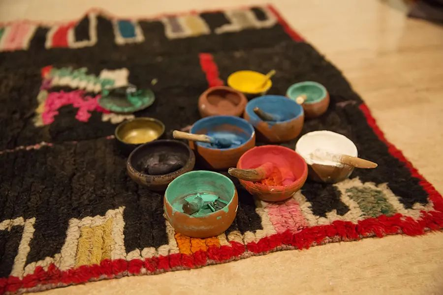 沉淀好之后,将颜料在太阳下晒干,晒干之后的颜料会结块,制作者要用筛子将结块打碎分离成粉末,便是制作颜料的全部步骤。
