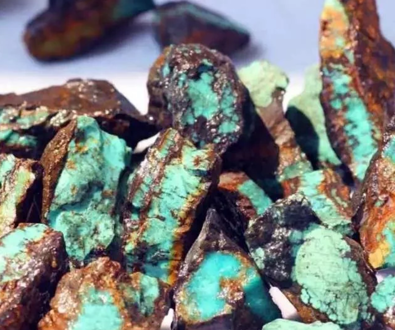 矿石类有:白土、红土、南碱、朱砂、蓝靛石、水银、硼砂、寒水石、石膏、土矾、砒石、雄黄、铁砂、方解石、食盐、紫铜矿石、硫磺、黄铜矿石及铜氧化物,以及金、银、玳瑁石、猫眼石、胭脂、墨锭等。