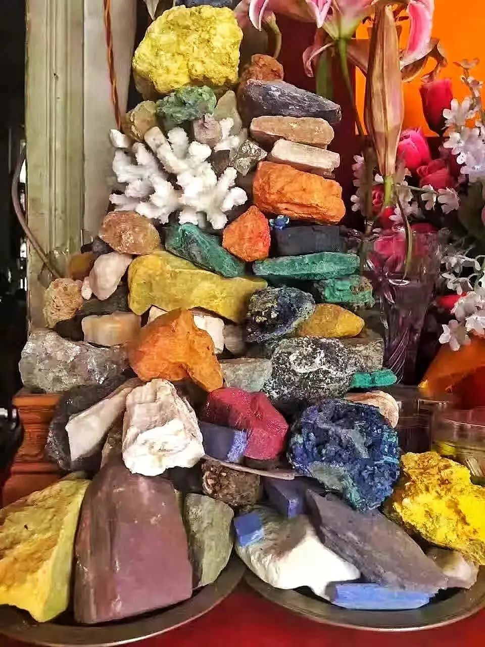 唐卡可用的颜料,全部由画师本人加工制作,大部分取之自然,使用天然矿石、动植物颜料在画布上绘成一幅幅精美艺术品。